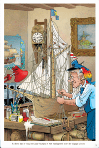 Stripauteur en illustrator Jeroen De Coninck is samen met de Smurfen van de partij in de School voor Scheepsmodelbouw. Want de serieux van historische modelbouw – precisie & expertise – en HAHA-dolle pret gaan goed te samen.
